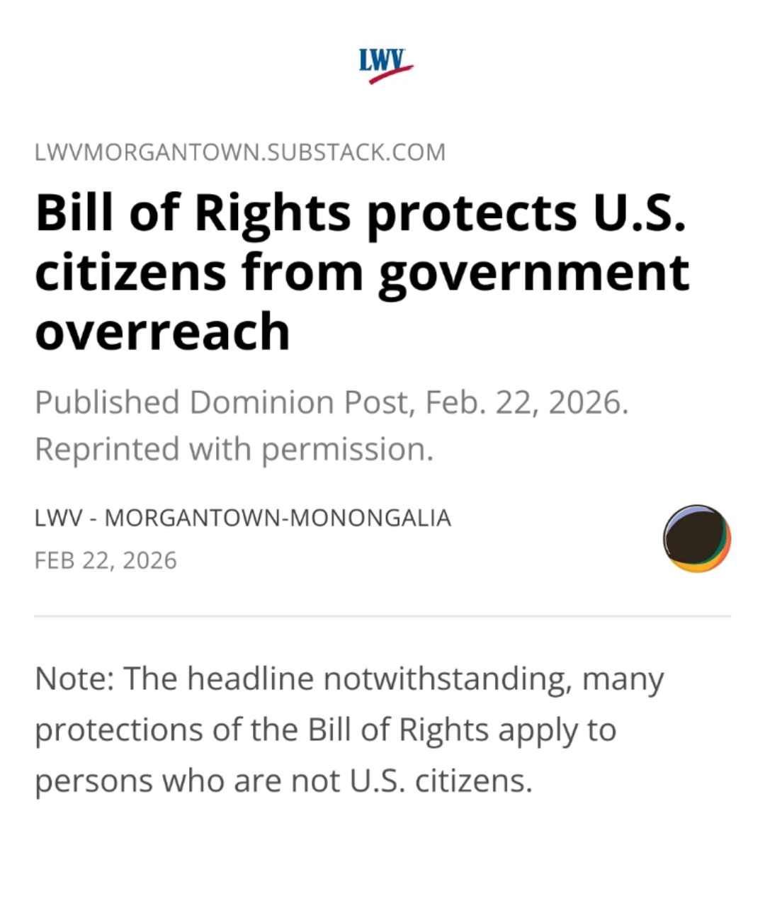 https://lwvmorgantown.substack.com/p/bill-of-rights-protects-us-citizens