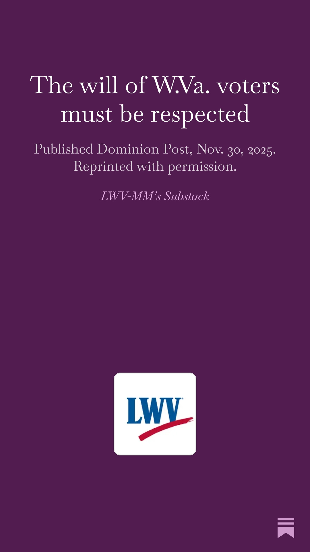 No means no. In this case, it is our Legislature that is failing to understand that. https://lwvmorgantown.substack.com/p/the-will-of-wva-voters-must-be-respecte...